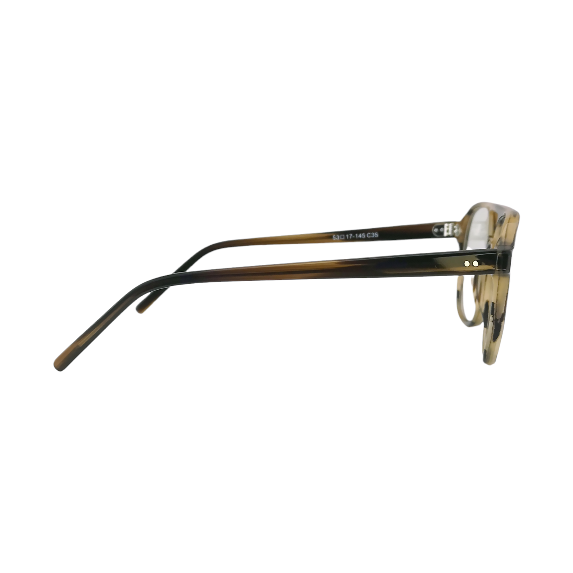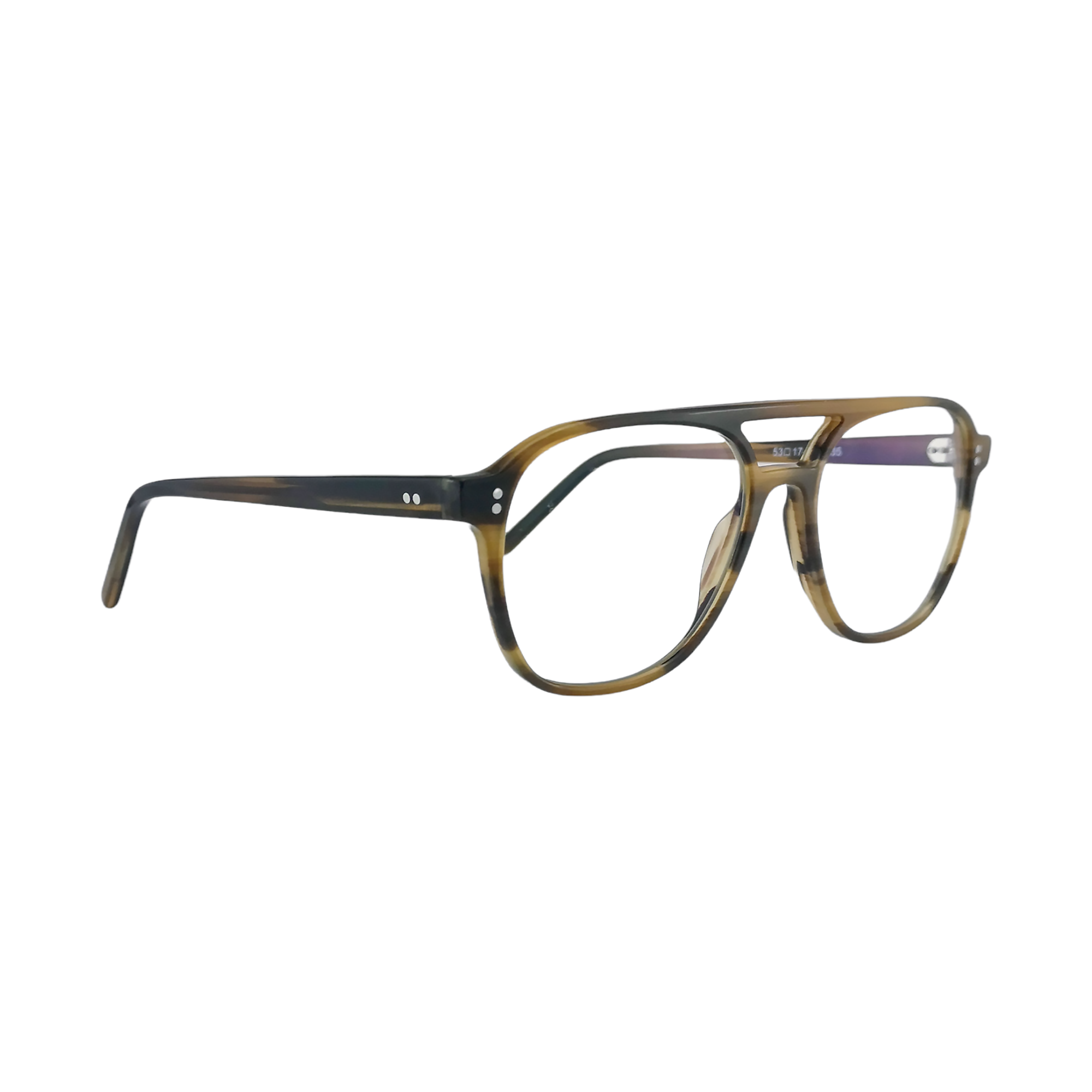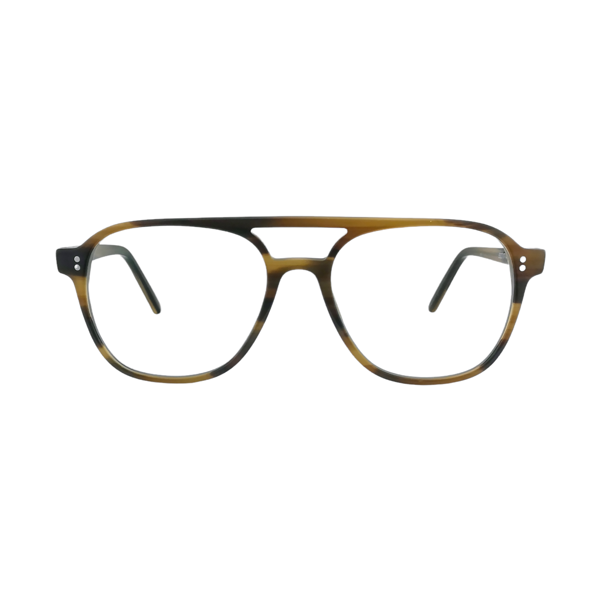 Geniales lentes de descanso estilo aviador single-bridge en acetato italiano Mazzucchelli con acabado en café rayado. Apto para colocar lunas a medida.