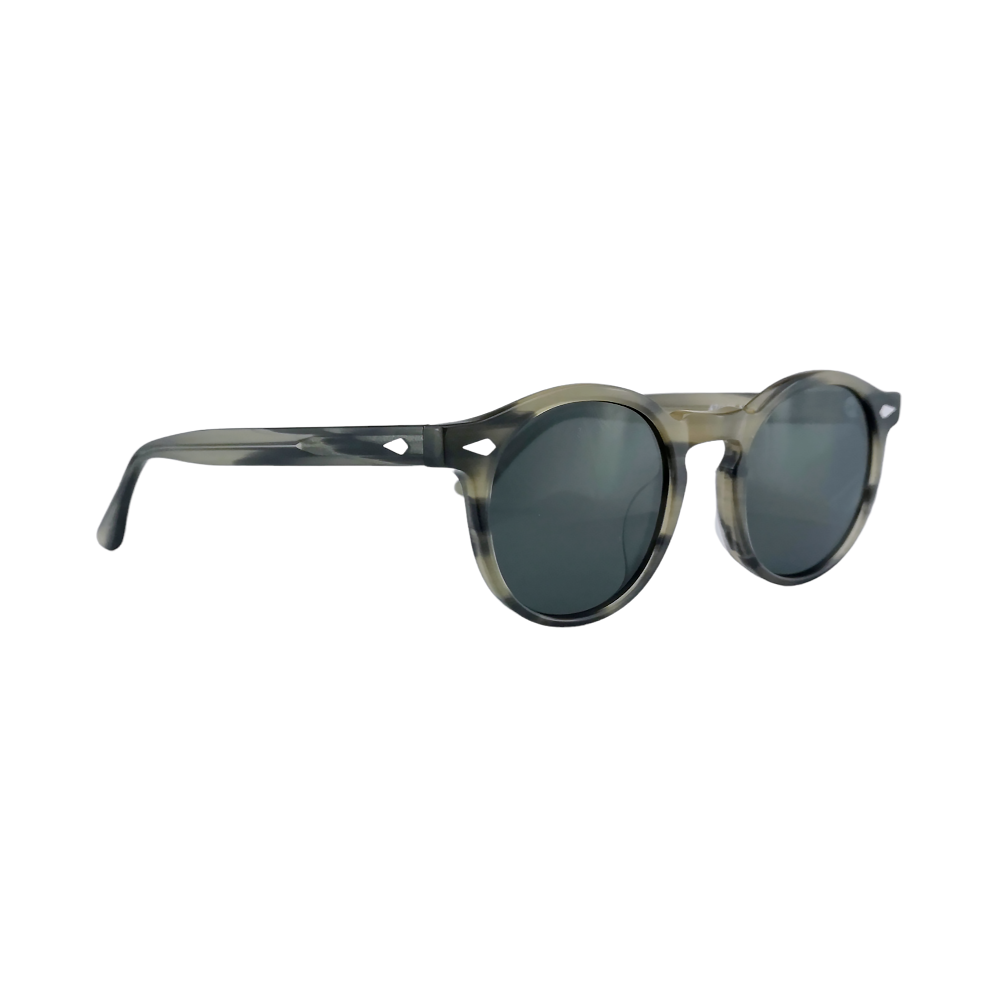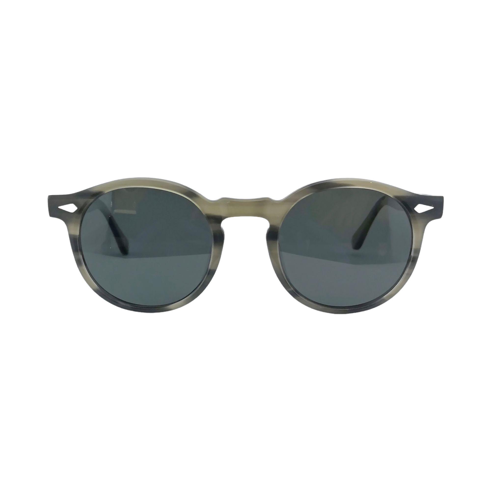 Geniales gafas de sol polarizadas estilio redondo en acetato italiano Mazzucchelli con acabado tipo rayado.